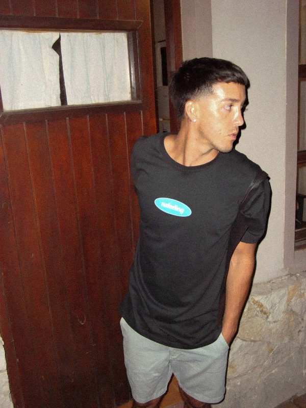 Remera Oversize "Benny"! Color Negro estampa azul